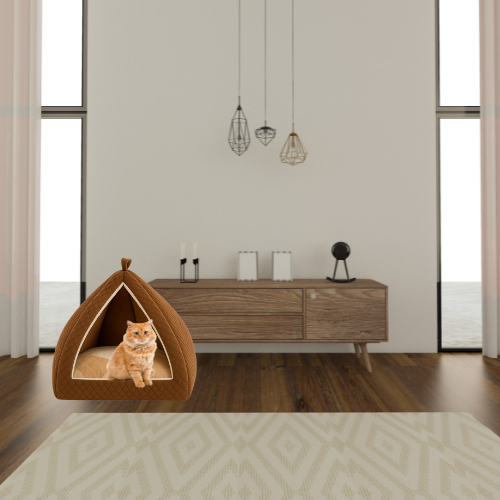 Cozy Plush Hut Bed for Cats & Small Puppies – Brown & Cream