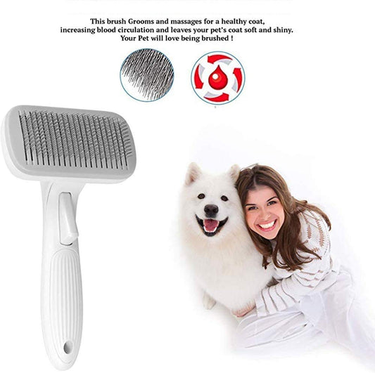 Pet Brush, One-button Auto-cleaning, Super Soft Silicone for Grooming Massaging Clean Hair with Hanging Holes (PINK)