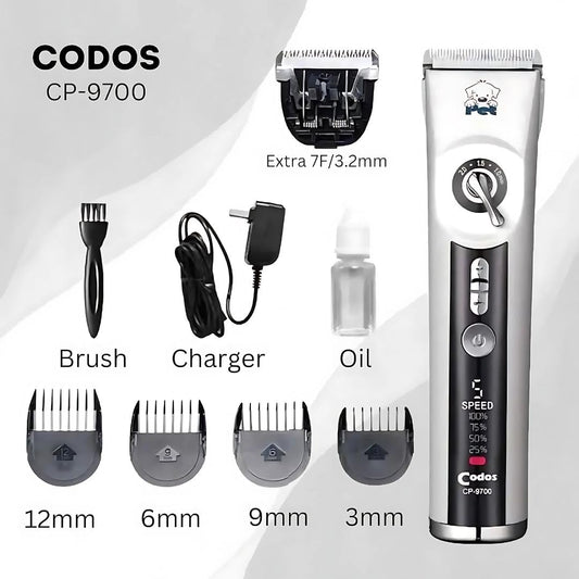 Codos CP-9700 Professional Pet Hair Trimmer with Ceramic Blade & LCD Display, 5 Speed Levels & Adjustable Lengths - Rechargeable Dog and Cats